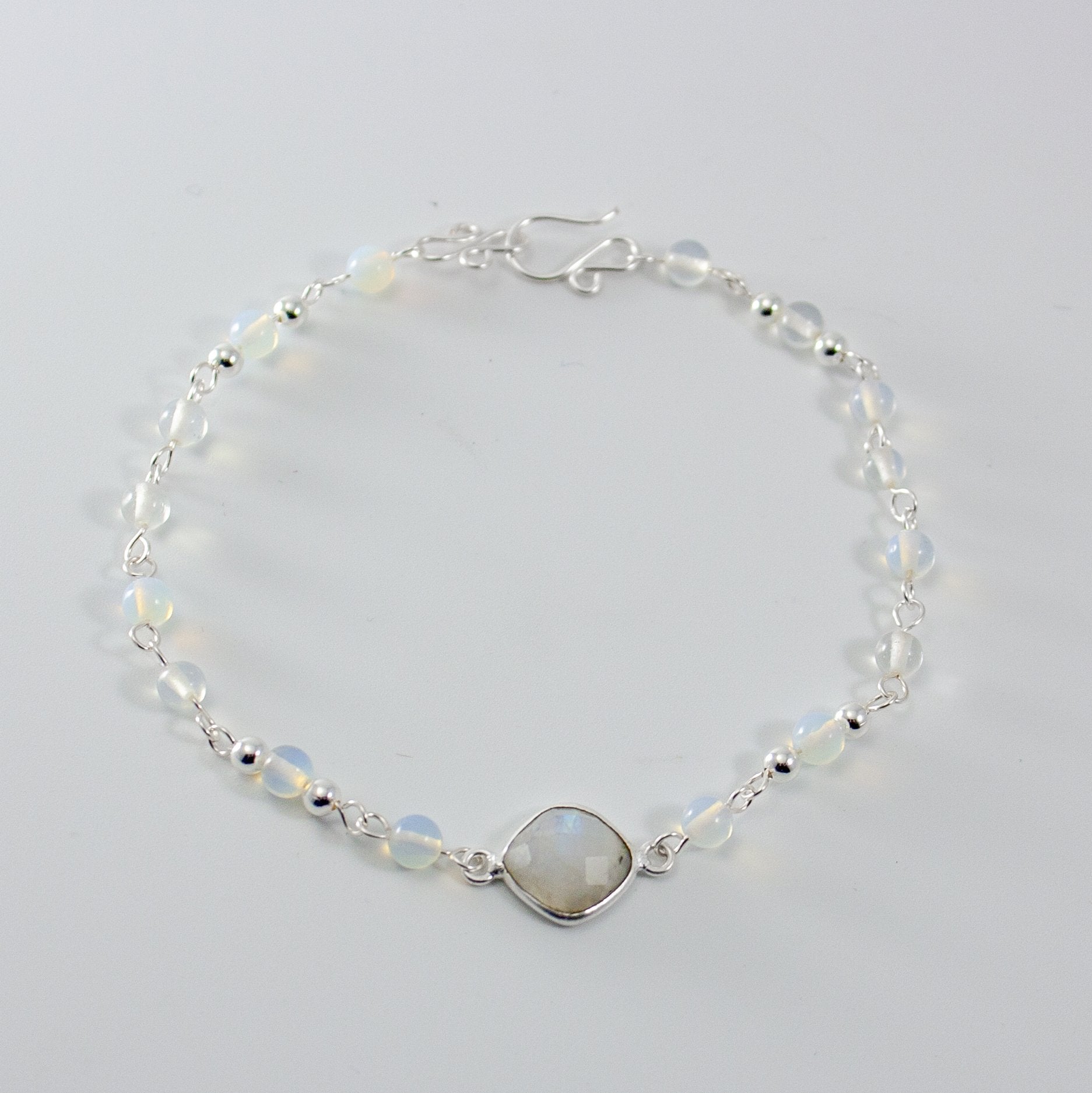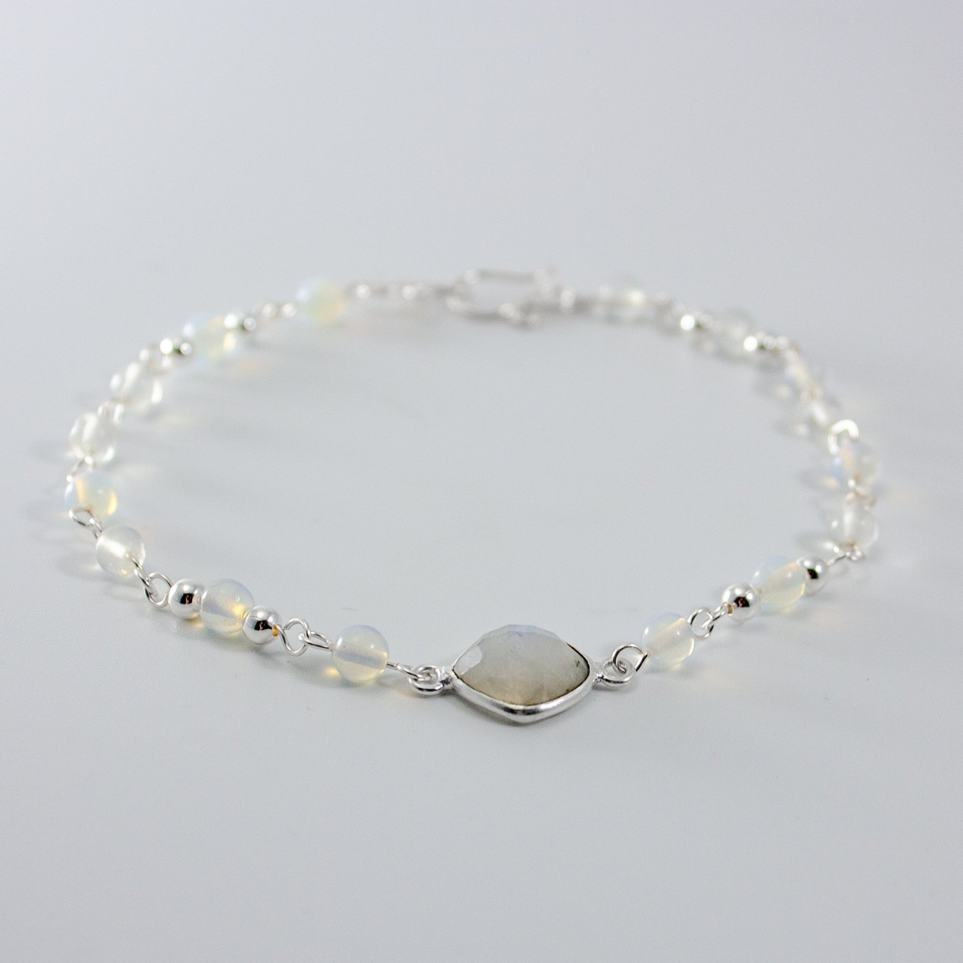 Ethereal and magnetic, THE SIREN was crafted for those who captivate without effort. Featuring luminous rainbow moonstone and soft-glowing opalite, this charm bracelet shimmers like light on the ocean — a reflection of allure, intuition, and quiet strength.